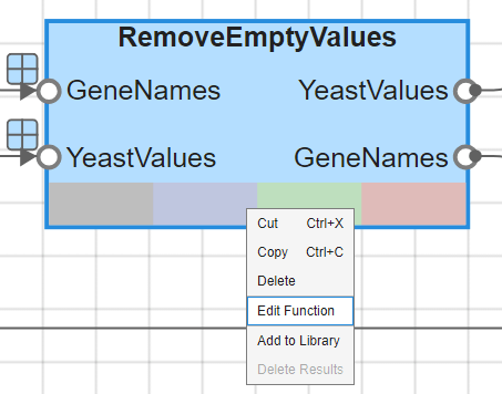 The UserFunction block RemoveEmptyValues removes all genes that are marked as 'EMPTY' or have NaN expression levels.