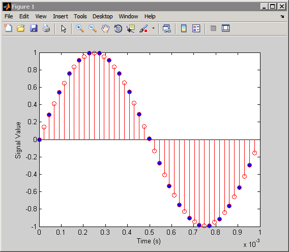 x  = sin(2*pi*1e3/fs*n);    % Original signal, sinusoid at 1 kHz