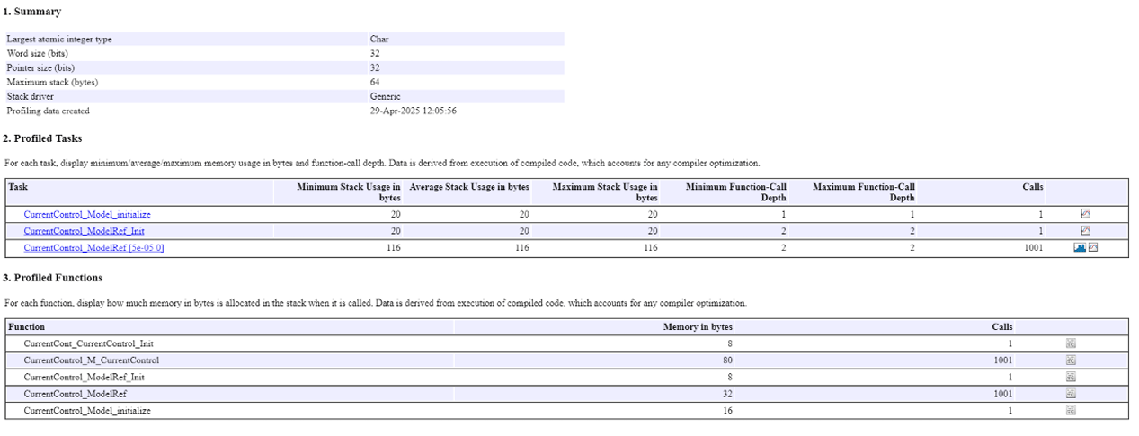 On completion, a stack profiling report will be generated. Review the report to ensure stack usage is within hardware limits.
