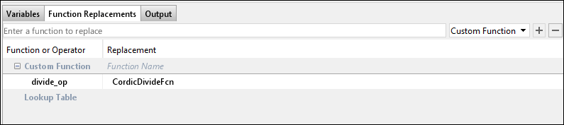 cfg.addFunctionReplacement('divide_op', 'CordicDivideFcn');