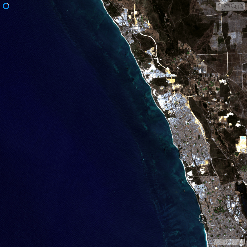 mndwiImg = mndwi.IndexImage;Create a polygonal region of interest in geographic coordinates. As the size of the spectral index image is the same as the size of the first band in the multispectral image, use the geospatial information of the first band of the multispectral image.