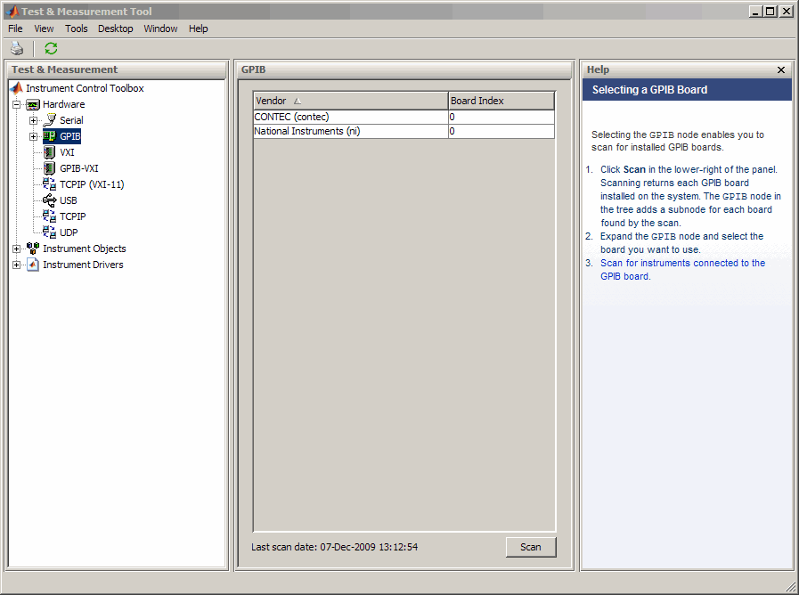 The Test & Measurement Tool enables you to scan for installed drivers, and to use those drivers when creating device objects.