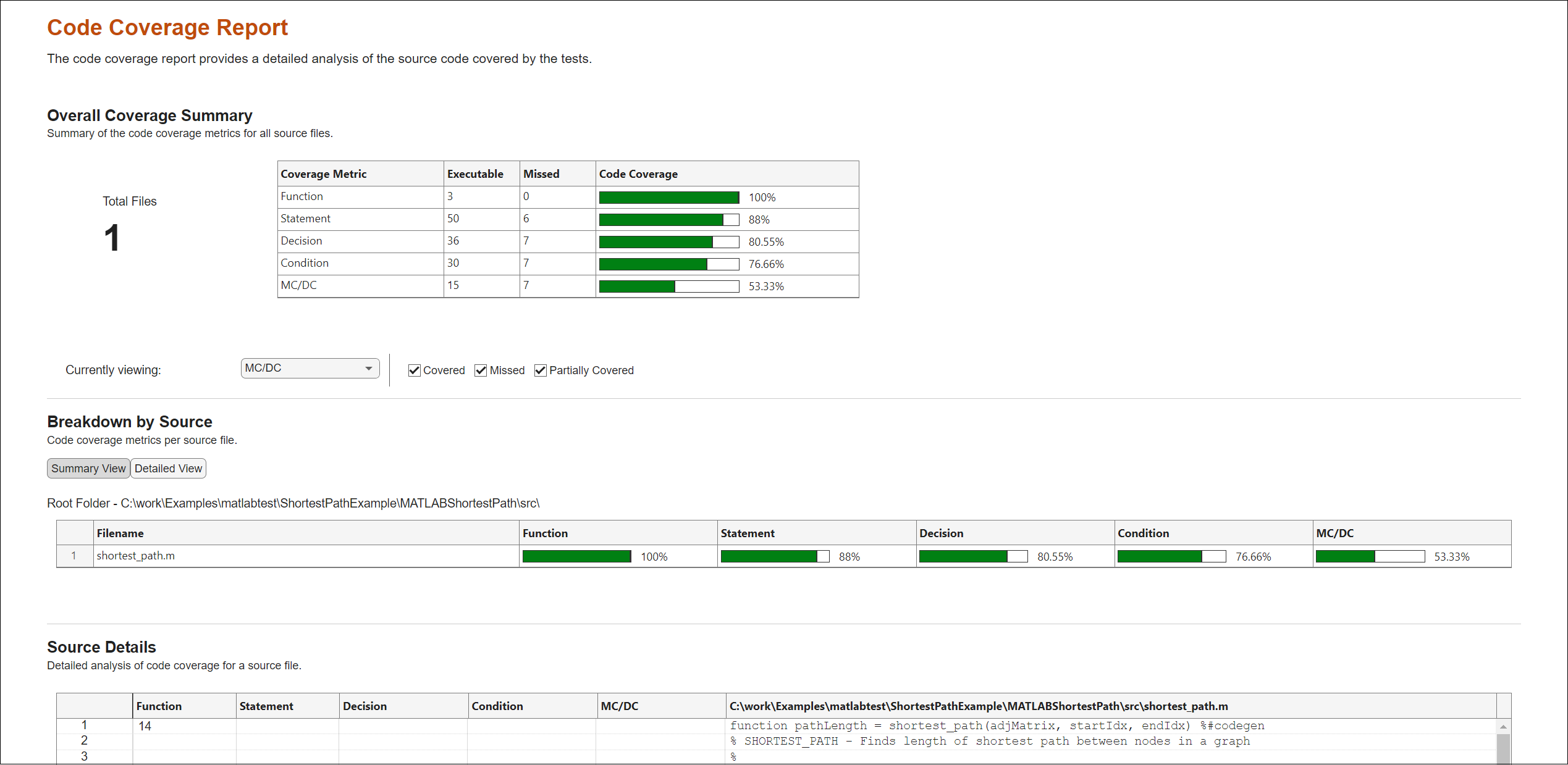 MATLAB code coverage report has been saved to: C:\work\Examples\matlabtest\ShortestPathExample\MATLABShortestPath\report\index.html