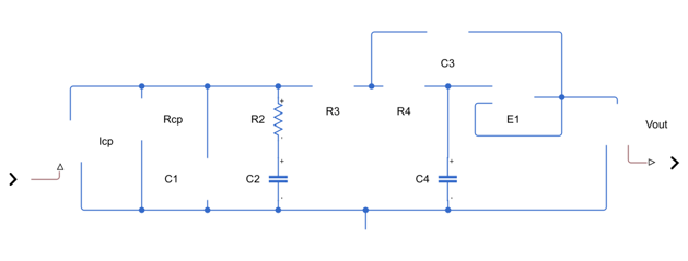 In this loop filter design, the last RC section of the loop filter with loading is replaced by a Sallen and Keye active filter. This circuit design introduces a pair of resonant poles with a modest Q factor.