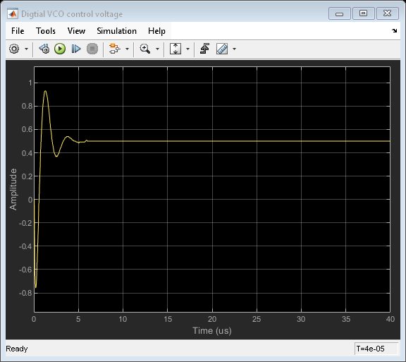 While the loop filter coefficients, input signal and output signal in this example are all double precision floating point, it would also be possible to use Fixed-Point Designer™ to model the entire digital feedback path using exactly the same digital precision as in the circuit design, thus obtaining even more precise evaluation of impairments such as quantization noise.