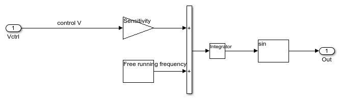 set_param(gcb, 'LinkStatus', 'none')to make the block editable.The original Ring Oscillator VCO from Mixed-Signal Blockset™ outputs a pulse train whose frequency depends on the control voltage. To generate a sine wave, the process involves:Computing instantaneous frequency from the half-period.