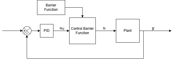 Architecture — This figure shows a typical way of implementing Control Barrier Function blocks to modify PID controller actions.