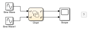 This model contains two Sine Wave (Simulink) blocks: one with a frequency of 1 radian per second, and the other with a frequency of 2 radians per second.