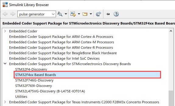 STM32 Microcontroller Blockset enables you to use Simulink blocks to access peripherals during run time and use the STM32CubeMX tool to configure peripherals on the processor.