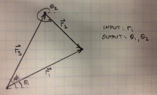 x = arctan((-cos(p)*2^(1/2)*((L2+L1+R)*(R+L1-L2)*(R-L2-L1)*(L2-L1+R)*(-1+cos(2*p)))^(1/2)-(R^2-L1^2+L2^2)*(-1+cos(2*p)))/(R*L2*sin(p)), (2^(1/2)*((L2+L1+R)*(R+L1-L2)*(R-L2-L1)*(L2-L1+R)*(-1+cos(2*p)))^(1/2)+(2*R^2+2*L2^2-2*L1^2)*cos(p))/(R*L2)) y = arctan((-cos(p)*2^(1/2)*((L2+L1+R)*(R+L1-L2)*(R-L2-L1)*(L2-L1+R)*(-1+cos(2*p)))^(1/2)-(R^2-L1^2-L2^2)*(-1+cos(2*p)))/(L2*sin(p)*L1), (2^(1/2)*((L2+L1+R)*(R+L1-L2)*(R-L2-L1)*(L2-L1+R)*(-1+cos(2*p)))^(1/2)+(2*R^2-2*L2^2-2*L1^2)*cos(p))/(L1*L2))