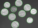 Multiple circles may be detected by finding peaks in the 3D accumulator array. A function, circle_houghpeaks, is provided for this. A demonstration of the two functions is included as a script, circle_houghdemo.