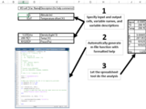 Often a very useful and complicated spreadsheet tool is available, and mkxlsfunc takes the overhead out of integrating the tool into the rest of your MATLAB code by generating an m-file function that automatically writes inputs to the spreadsheet and reads the outputs.