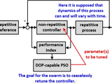 Repetitiveness of a process to be controlled is innate to many industrial systems. Its presence creates new possibilities in developing control algorithms that take into account errors from previous passes to shape the control signal in current pass. Nevertheless, many repetitive processes can and are effectively controlled using non-repetitive controllers, i.e. quality requirements can be met without implementing repetitive controllers. However, it is not rare that such systems are subject to dynamics variations and in turn adaptation of controller gains could be a desirable feature. This submission illustrates concept of employing a particle swarm optimizer (modified to enable dynamic optimization problem solving) to adapt non-repetitive controller gains in the gradient-free manner. The performance is continually evaluated -- during the regular operation of the system -- using user-defined performance index and the PSO tracks the moving optimum as the plant is assumed to be time-variant (is not stationary). For more information please see comments inside the m-file.